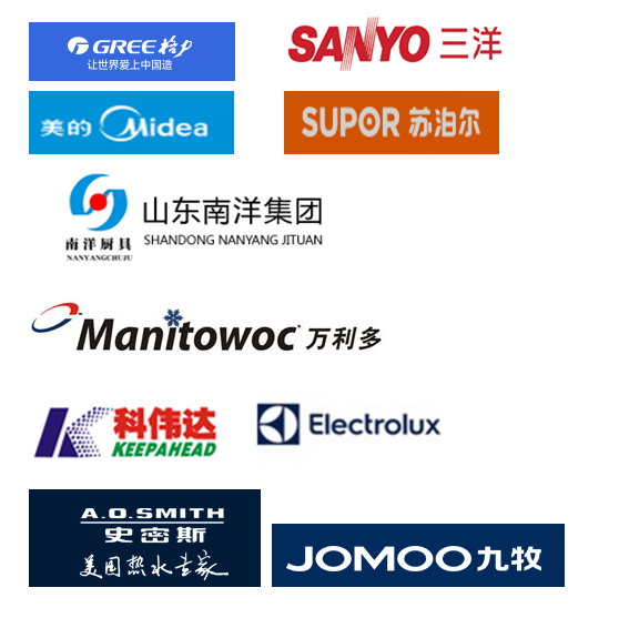 bb21在家用電器制造及廚衛產品制造行業的典型客戶:格力電氣、三洋電器、蘇泊爾、美的電器、伊萊克斯、AO史密斯、九牧衛浴、南洋廚具、馬尼托瓦、科偉達等。